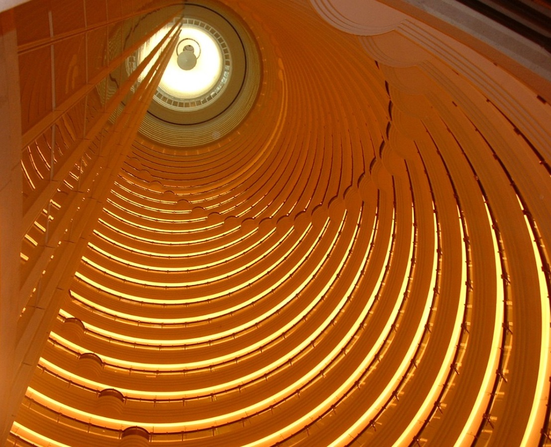 Su forma postmoderna, cuya complejidad aumenta según se eleva el edificio, se inspira en la arquitectura china tradicional, como la pagoda escalonada, que retrocede suavemente para crear una pauta rítmica según se eleva. Fue diseñado por el arquitecto Fazlur Khan y representa un estilo Art Deco/moderno. Externamente, el edificio está cubierto por un bastidor de aleación de aluminio, que encierra una pared de vidrio, granito, acero inoxidable y aluminio.