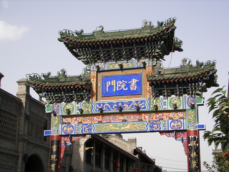 La calle Shu Yuan Men, también llamada la Calle de las Artes o la Calle de la Caligrafía, tiene tiendas que datan de más de 400 años. Venden artes, artesanías, caligrafía y pinturas tradicionales chinas. La entrada se realiza a través de una antigua puerta llamada Puerta del Sur. La calle recibe su nombre del Guanzhong Shuyuan, que en su momento fue una escuela de aprendizaje clásico. Hoy en día, la Escuela Normal de Xi'an y una escuela primaria se encuentran en el sitio del antiguo Guanzhong Shuyuan. Las tiendas conservan las antiguas fachadas de los edificios de las dinastías Ming y Qing.