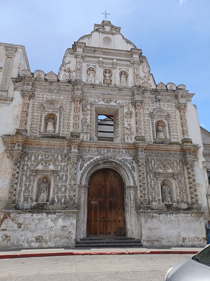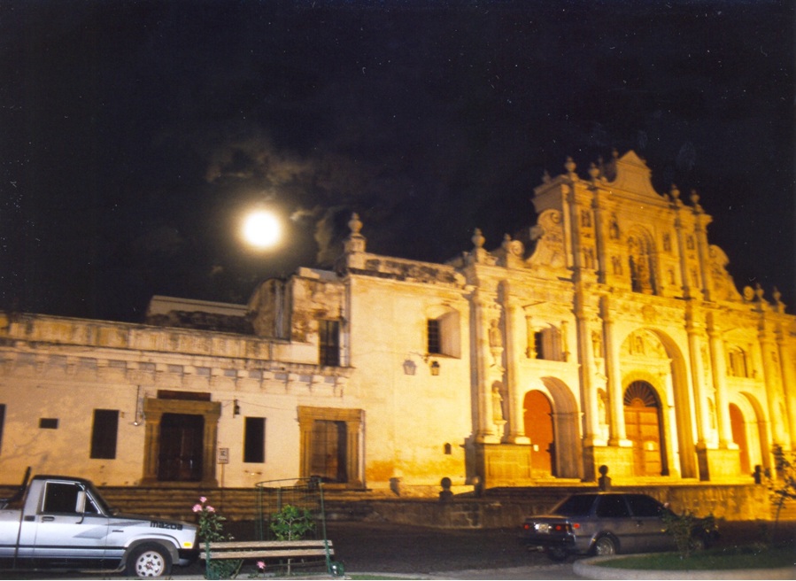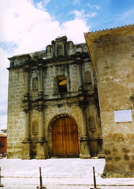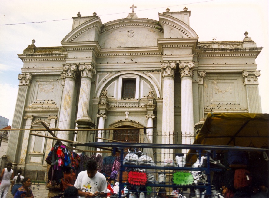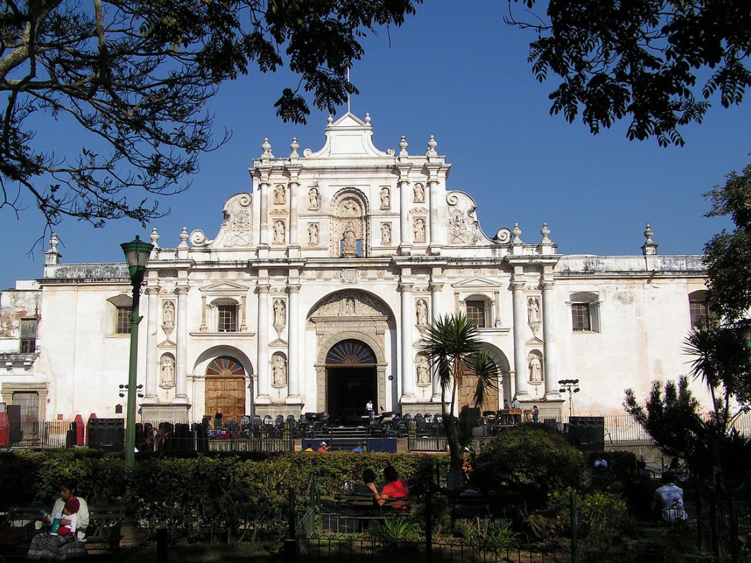 Catedral de Santiago, Parroquia de San José. La primera edificación fue iniciada el año de 1545 con los escombros traídos del destruido asentamiento en el valle de Almolonga. Su construcción fue entorpecida por los frecuentes sismos. Un segundo santuario sería inaugurado en 1680. El rango de catedral lo obtuvo en 1743. La primera catedral albergó los restos del conquistador Pedro de Alvarado que habían sido trasladados a petición de su hija en 1568, pero desaparecieron a raíz de su demolición.