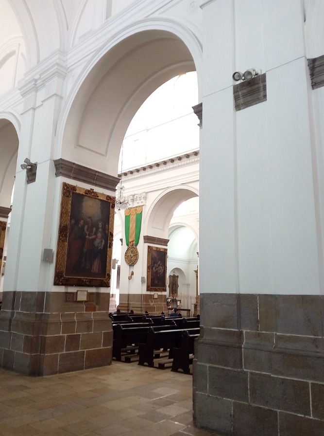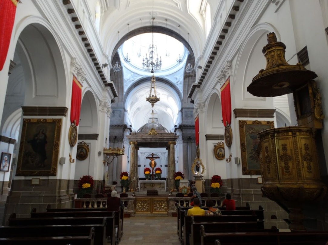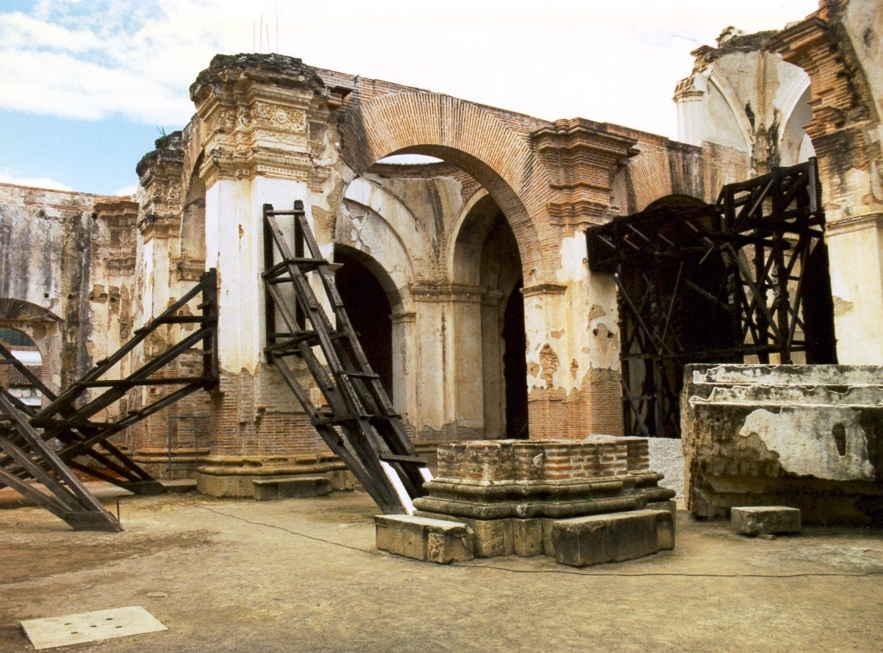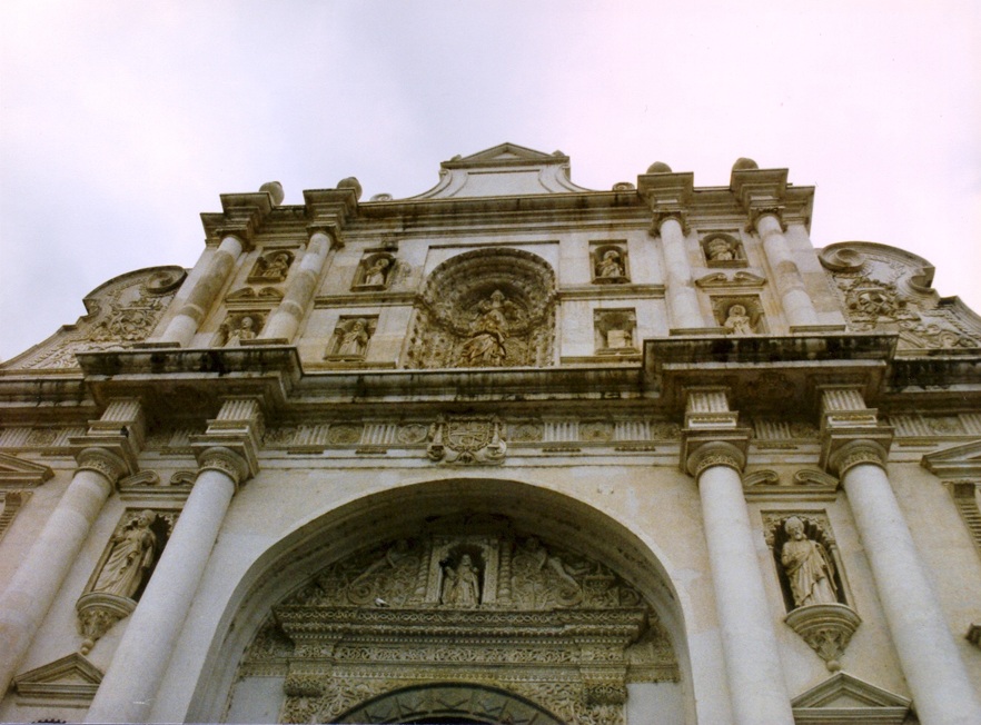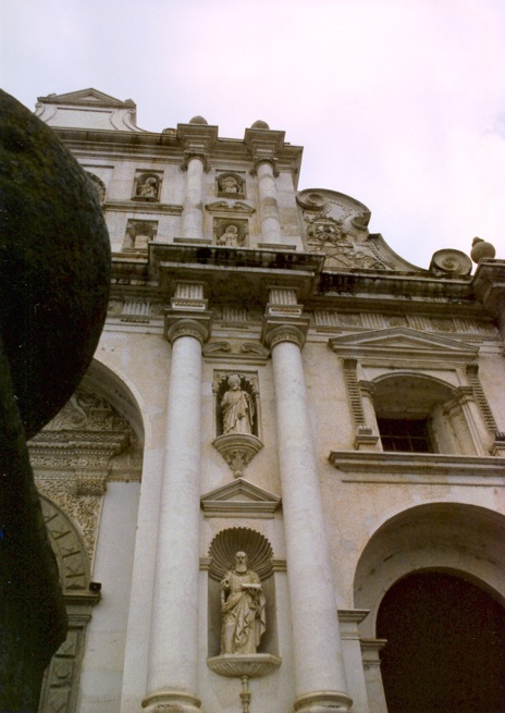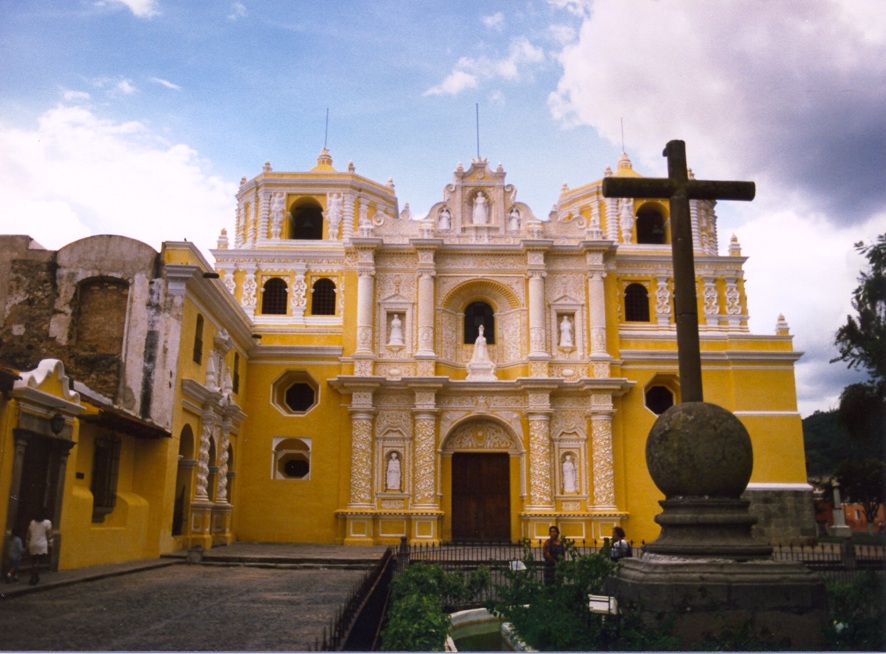 Catedral de Santiago, Parroquia de San José. La primera edificación fue iniciada el año de 1545 con los escombros traídos del destruido asentamiento en el valle de Almolonga. Su construcción fue entorpecida por los frecuentes sismos. Un segundo santuario sería inaugurado en 1680. El rango de catedral lo obtuvo en 1743. La primera catedral albergó los restos del conquistador Pedro de Alvarado que habían sido trasladados a petición de su hija en 1568, pero desaparecieron a raíz de su demolición.