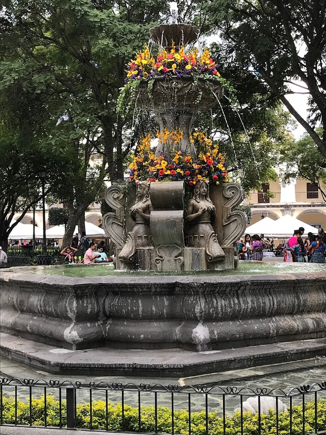Antigua está llena de patios, el tamaño de algunos de estos patios es increíble. Todos los que vimos eran muy alegres y llenos de flores. En algunos habían aves de muchos colores. El restaurante donde almorzamos tenía una fuente y unas ocho o diez mesas en el patio y éste era minúsculo comparado con los de algunos hoteles. Por cierto, la comida excelente y no muy cara.