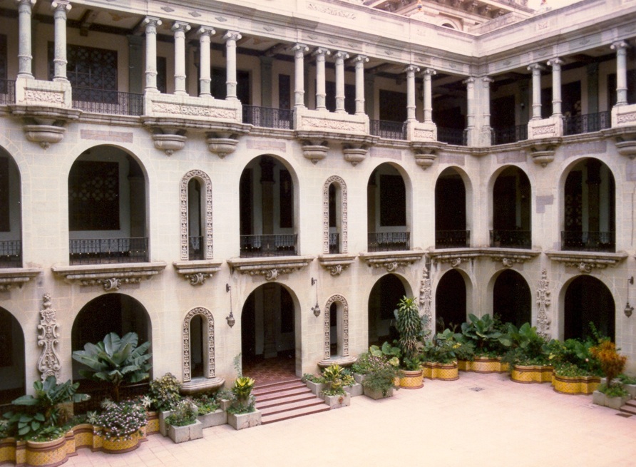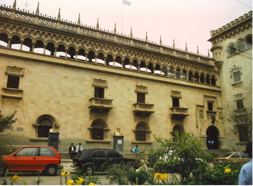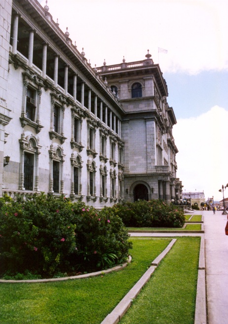 En el centro hay un inmenso parque, cubre un par de gigantescas cuadras. Alrededor del parque encontramos el antiguo Palacio Presidencial. Un edificio de a mediados del Siglo XX color verde. Se puede visitar, lo cual hicimos. Las salas interiores, murales y patios son dignos de ver. No lo vamos a llamar ostentoso, pero sí de muy buen gusto. Los pasillos son rectos pero las escaleras son un poco intrincadas, hay que tener cuidado para no perderse.