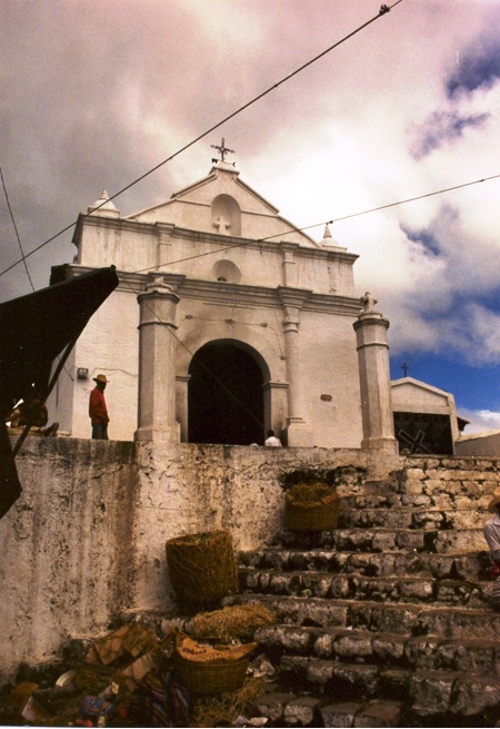 En el pasado, durante la conquista de los españoles y la cristianización, fue difícil despojarlos de sus creencias religiosas, lo cual ha dado como resultado una serie de tradiciones que son mezcla de ambas corrientes religiosas. Antes existía en este lugar un templo maya que fue destruido para edificar una iglesia católica. Las gradas iniciales fueron rechazadas por los locales y fueron reemplazadas por escalinatas, en las cuales cada escalón representa cada uno de los 20 días del mes del calendario maya. Cerca de su base se encuentra un área para encender un fuego diariamente también tradicional. En su parte alta, a la entrada de la iglesia, se practican frecuentemente rituales y oraciones con incensarios.
