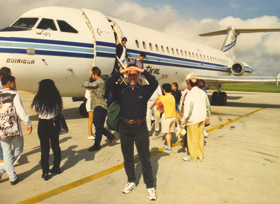 Desde la ciudad de Guatemala viajamos al parque nacional Tikal. Este parque se encuentra en la provincia o departamento de Petén, en la nación de Guatemala. Está localizado al norte, haciendo frontera con México en la base de la Península de Yucatán. El viaje se puede realizar en automóvil. Hasta hace un año la travesía tomaba unas veinte horas. Nos informaron que gracias a recientes mejoras en las carreteras, se logra en unas ocho horas. La idea nos pareció muy atractiva, pero nosotros no teníamos tanto tiempo disponible. Tuvimos que escoger la vía rápida, por avión.