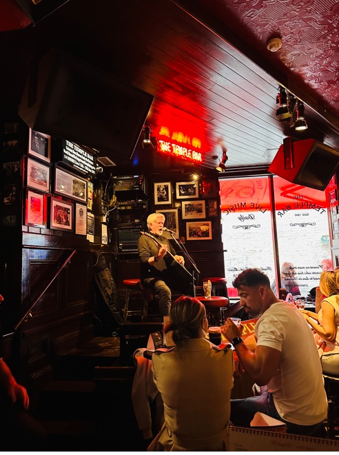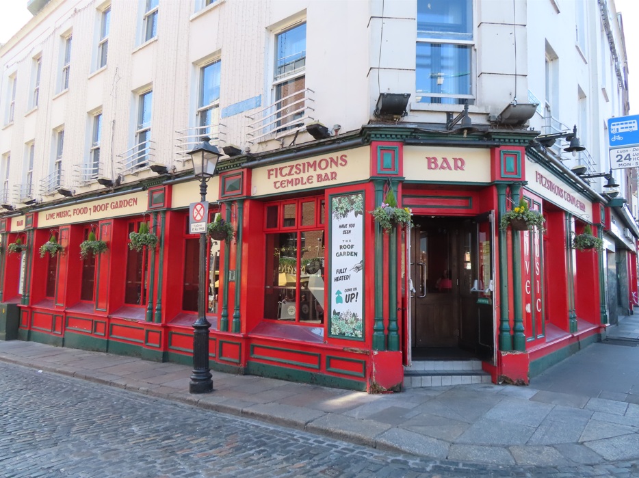 Hoy Temple Bar, clásico entre los clásicos, no hay viajero que llegue a Dublín que no pase por este Pub. El ambiente empieza desde las 10:30 de la mañana hasta la 1:30 de la noche, con música irlandesa en vivo. Aquí encontrarás un ambiente internacional con gente de todo el mundo, tanto clientes como trabajadores. Su gerente, una mexicana de San Luis Potosí, Marisol, siempre está al tanto de que todo vaya bien.