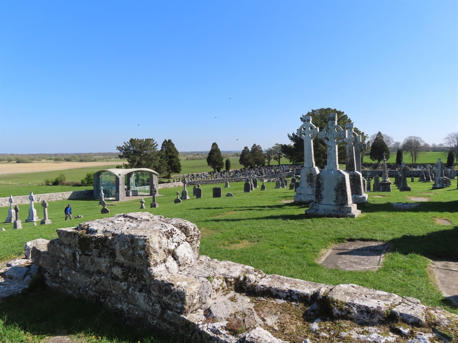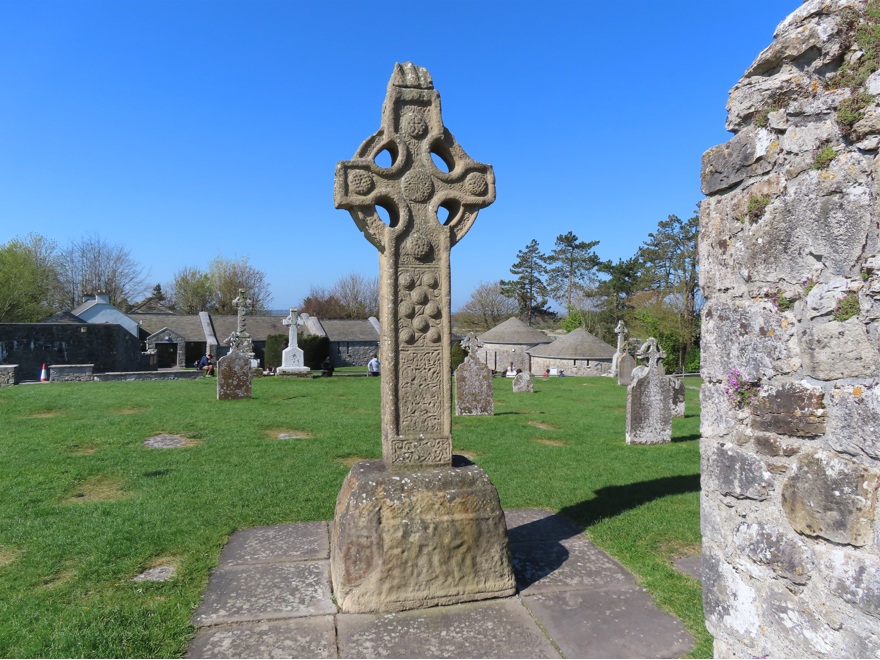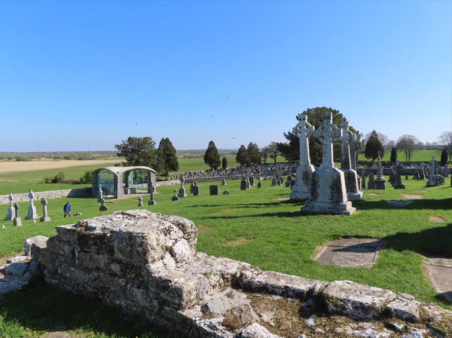 A mitad de camino nos desviamos de la autopista para ir hasta las Ruinas de Clonmacnoise. El Monasterio de Clonmacnoise fundado por San Ciaran en el siglo IV. En el condado de Offaly, situado a orillas del Río Shannon, prácticamente en el centro de la isla, y allí encontramos la Abadía de Clonmacnoise. Las ruinas que se conservan hoy en día pertenecen a una decena de iglesias y torres construidas entre los siglos X al XVII.