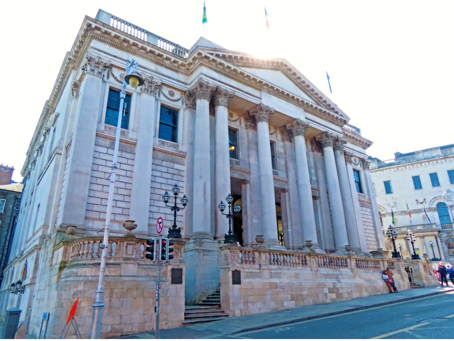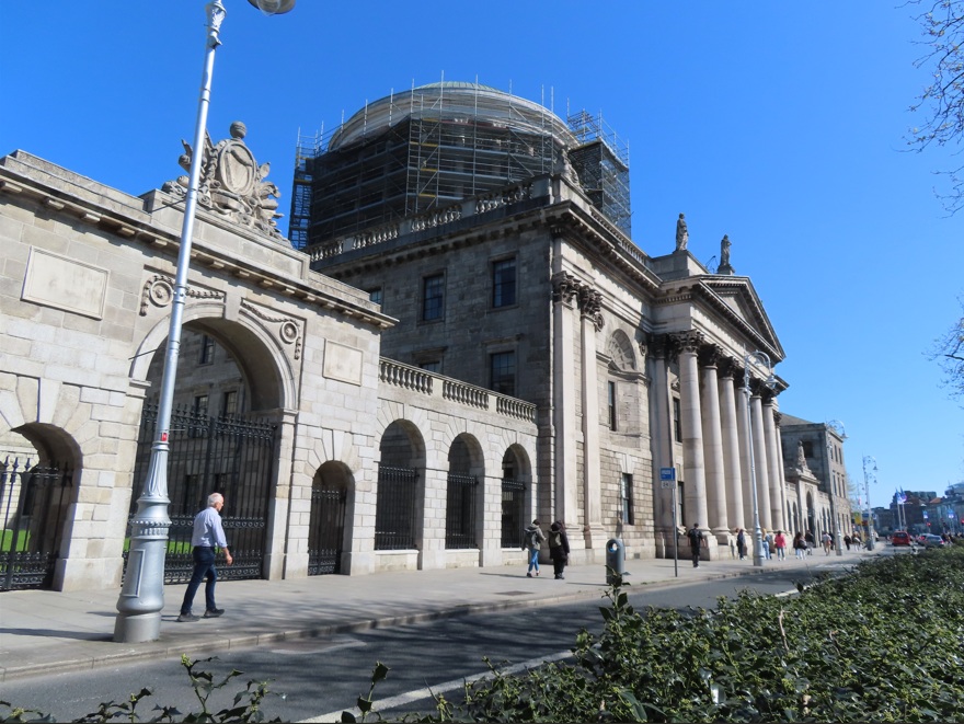 Y posteriormente con uno de los principales monumentos que están junto al río, la sede del Tribunal Supremo de Irlanda, un edificio conocido como Four Courts formado por un pórtico de 6 columnas sobre las que se eleva una cúpula de cobre. Four Courts data de principios del siglo XIX aunque tuvo que ser reconstruido en 1932 ya que durante la guerra civil irlandesa fue prácticamente destruido perdiéndose miles de documentos que se remontaban al siglo XII. Eso sí, se reconstruyó siguiendo el diseño original.