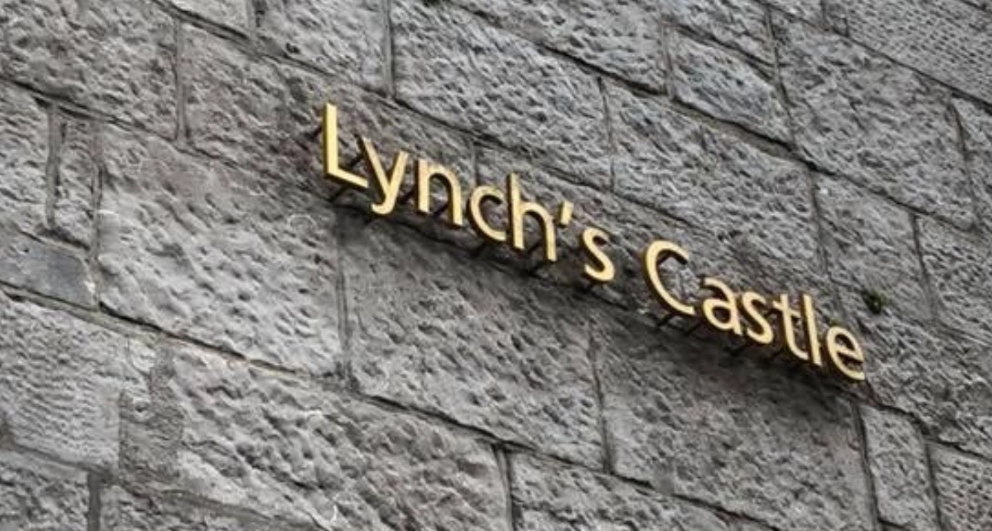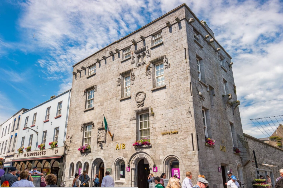 El Castillo de Lynch. No es del todo un castillo. Se trata más bien de una robusta residencia que fue en su día hogar de una de las familias mas poderosas de Galway, los Lynch. Ahora es la sede de un banco. Lo más destacable es la fachada con sus ventanas, escudos y gárgolas.