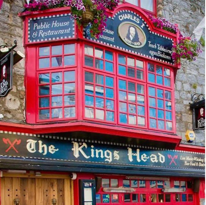 En lo que respecta a los pubs, Galway tiene una de las escenas más animadas de la isla. Galway tiene un ambiente especial, aquí conoceremos el por qué nacieron los famosos pubs irlandeses. Entra en los cálidos rincones y recovecos de madera de Tigh Neachtain’s, en Cross Street, y te pasarás las horas tan contento mirando los cachivaches y recuerdos mientras tomas una cerveza artesana Galway Hooker. Los más destacados O’Connells y sobre todo The King´s Head, situado en un edificio de más de 800 años y con mobiliario antiguo, que estamos seguros, no te dejará indiferente. Querrán volver!.