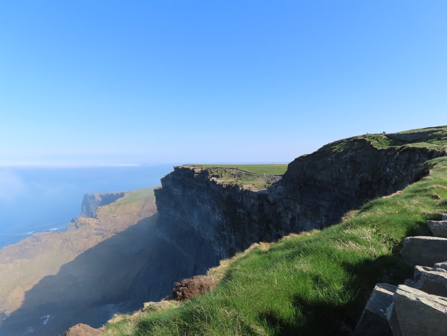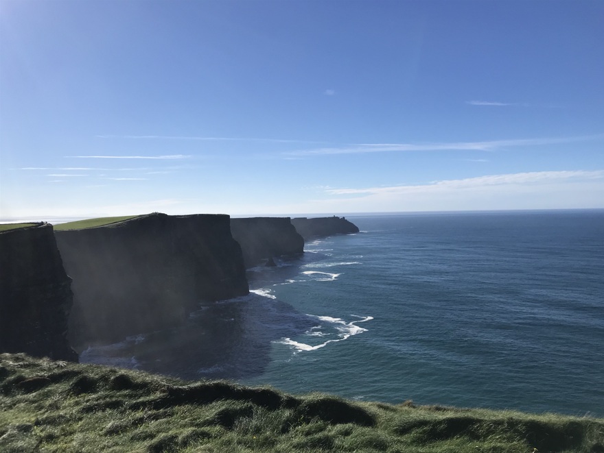 Los Acantilados de Moher. Al llegar a los Acantilados de Moher, experimentarán el sentido de la libertad. 200 metros de altura sobre el nivel del mar y 8 Km de extensión. Los Acantilados de Moher se han convertido en una de las atracciones más visitadas al viajar a Irlanda, y la verdad es que no es para menos. Dicen que desde los acantilados, cuando el día está claro, se puede ver hasta la bahía de Galway. Se puede definir como un conjunto de vertiginosas cordilleras sobre el mar. Han sido escenario de diversas películas, como Harry Potter y el Misterio del Príncipe y su altura quita el aliento.