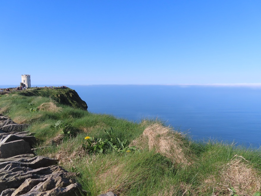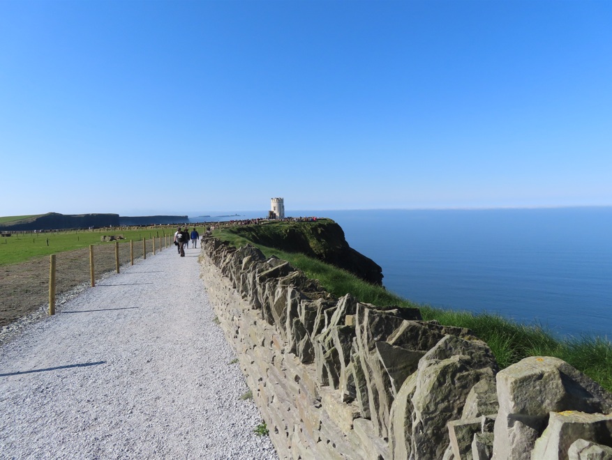 Por cierto, si llueve, no lleves paraguas, es inútil con tanto viento. Mejor llevar una capa. Junto al amplio aparcamiento se encuentra el centro de visitantes, excavado en la roca y donde se puede visitar una exposición sobre la fauna de los acantilados y la formación de los mismos. También hay un bar y un restaurante. Además, siguiendo uno de los senderos y subiendo unas escaleras se encuentra la Torre O’Brien, donde hay un mirador y se tienen unas vistas maravillosas.