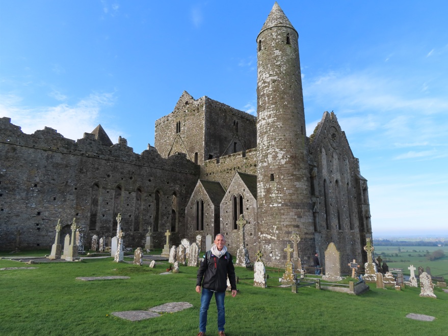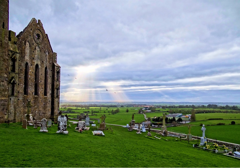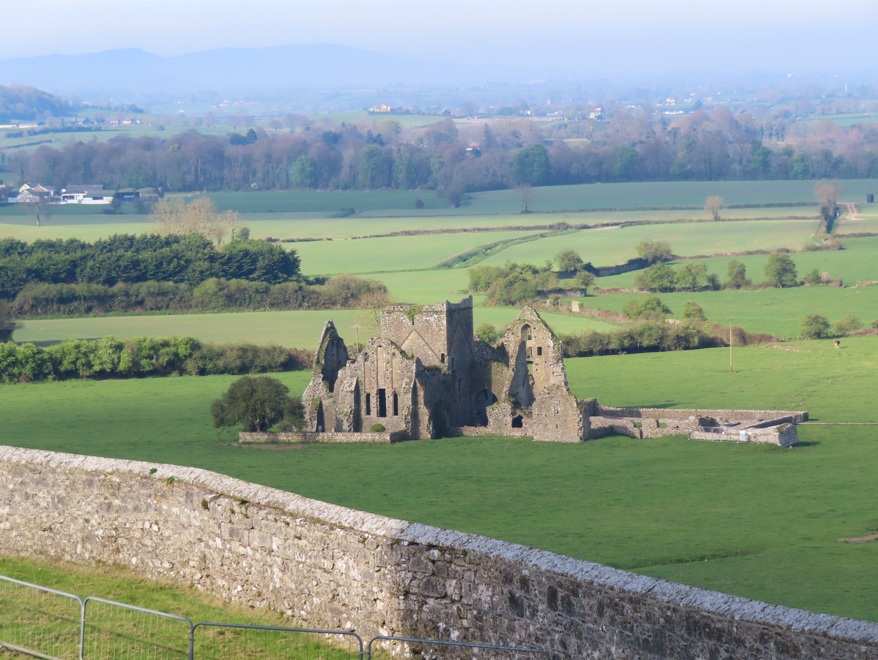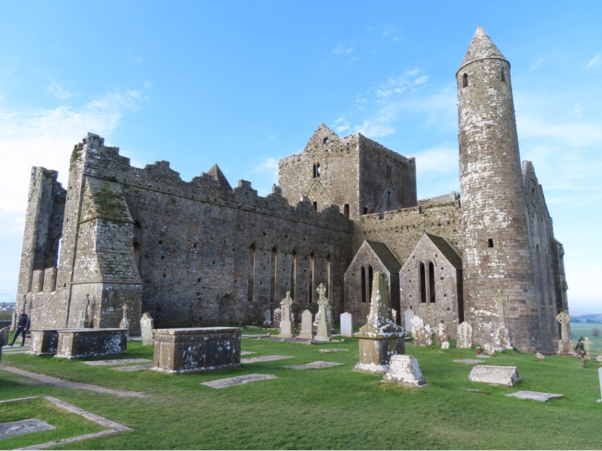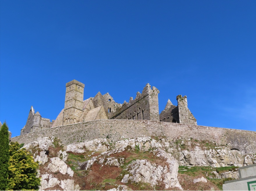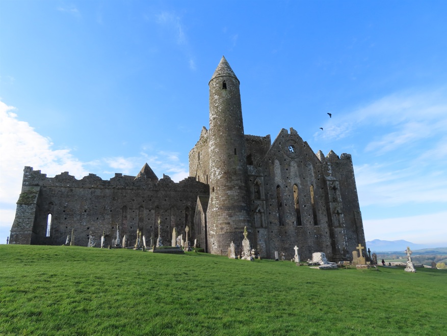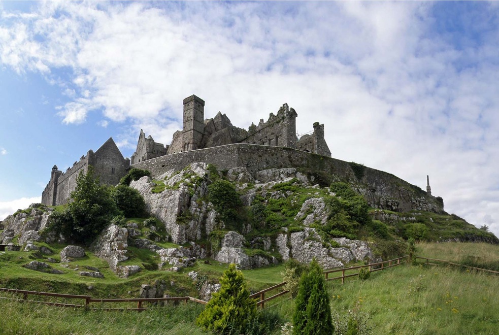 Salida hacia la Roca de Cashel (Rock of Cashel), recortando el cielo y elevándose por encima de los frondosos y verdes terrenos de los campos de alrededor, la Roca encierra más de 1.000 años de historia, en pleno corazón del Ancestral Este de Irlanda. Fue una fortaleza anterior a la invasión normanda que fue cedida al poder eclesiástico y está ligada a mitologías locales de San Patricio, patrón de Irlanda. En este lugar Oliverio Cromwell, en 1647, termina con la matanza de 3.000 personas. Son un un conjunto de antiguas fortificaciones rodeado de murallas, encaramadas en una pequeña colina y que constituye uno de los emplazamientos arqueológicos más espectaculares de Irlanda. Existen varios senderos para recorrer por la zona.