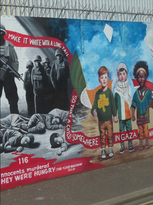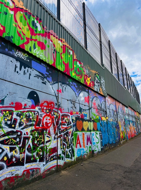 Los murales políticos de los barrios protestantes y católicos. Este barrio, el West, es totalmente diferente al resto de la ciudad de Belfast; pues se respira barrio para lo bueno y para lo malo. La zona en si no es ni bonita ni fea. Representan las disputas ideológicas que causaron la muerte de más de 3500 personas entre los que apoyaban que Irlanda del Norte perteneciera a Reino Unido y los partidarios de la independencia o incursión en la República de Irlanda, creando así un país unido en toda la isla.