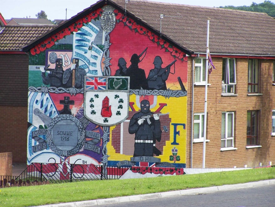 Los murales políticos en Belfast, Irlanda tienen una historia rica y compleja. Creados por los unionistas a principios del siglo XX para protestar contra el autogobierno de Irlanda, se han convertido en una forma de protesta colectiva y marcado territorial durante los Conflictos de finales de la década de 1970. Estos murales conmemoran acontecimientos históricos, opiniones políticas y grupos terroristas.