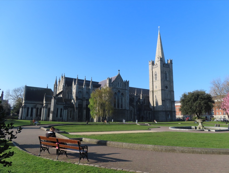 Catedral de San Patricio. Dedicada al patrón de Irlanda y considerado la mayor iglesia de Irlanda. Sus orígenes se remontan a una antigua iglesia de madera del siglo V, aunque la actual de estilo gótico poco tiene que ver con esta, y guarda varias joyas en su interior como una cripta del siglo XII, la pila bautismal de la Edad Media, la histórica «Puerta del Capítulo» y los sepulcros de personajes célebres como Jonathan Swift, autor de «Los viajes de Gulliver». La entrada son 11.00. Fue allí dónde San Patricio bautizó a los conversos alrededor del año 450.