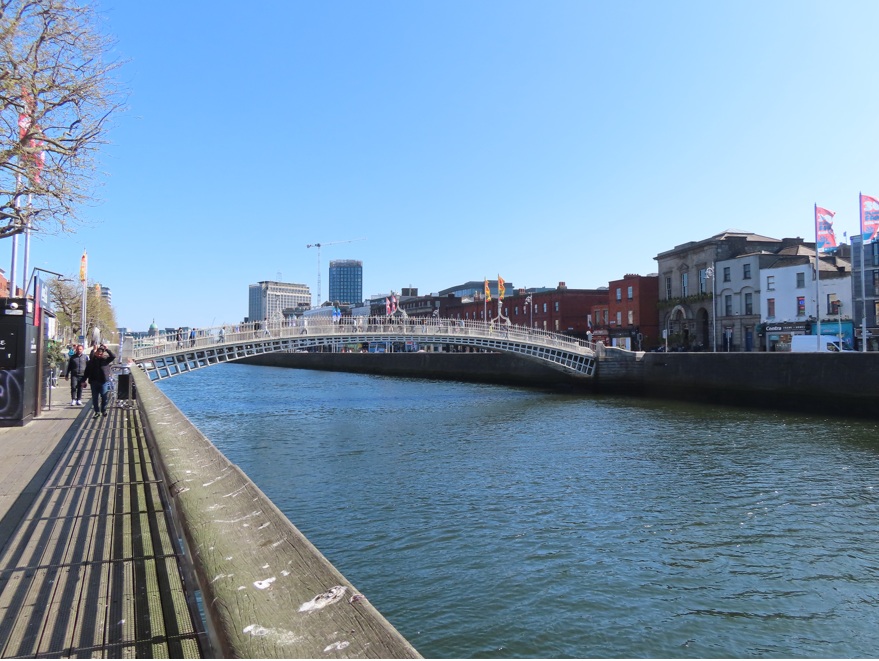 El siguiente puente es el más famoso de la ciudad. Se trata de Ha’penny Bridge, construido en hierro fundido en 1816 y que en su origen tenía un peaje de medio penique para poder cruzarlo. Es peatonal y sin duda uno de los símbolos de la ciudad y el que te lleva directamente de la parte norte del río al corazón de Temple Bar.