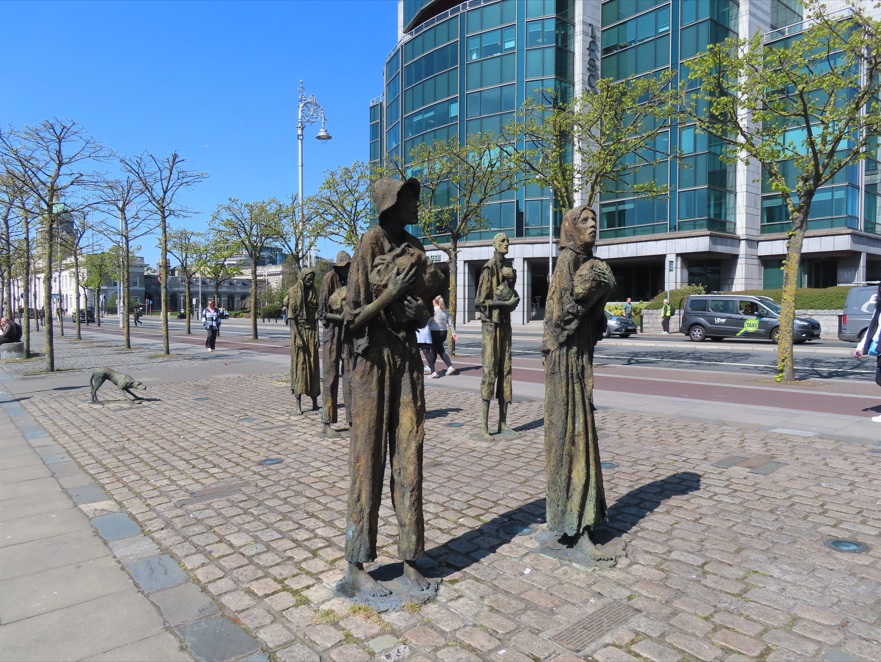 En el camino encontramos el Monumento a la Gran Hambruna (Famine Memorial) es un monumento en Dublín, Irlanda, que recuerda la Gran Hambruna (1845-1849), que redujo la población del país en la mitad debido a la muerte y la emigración. La obra callejera, esculpida por el artista Rowan Gillespie, está conectada con el cercano Museo de la Emigración Irlandesa (EPIC) y refleja el dolor de los hambrientos emigrantes irlandeses del siglo XIX.