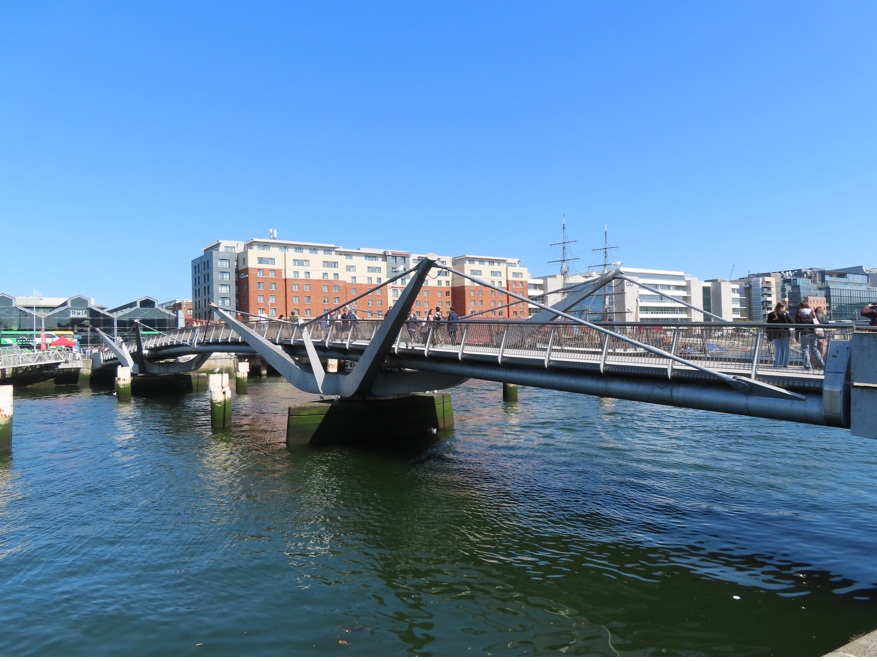 Nos encontramos con Graftan Bridge y sus candelabros y después con Sean O’Casey Bridge, el puente más moderno que cruza el Río Liffey, construido en 2005 con un llamativo diseño que no pasa desapercibido, que da la bienvenida a la zona más céntrica de Dublín.