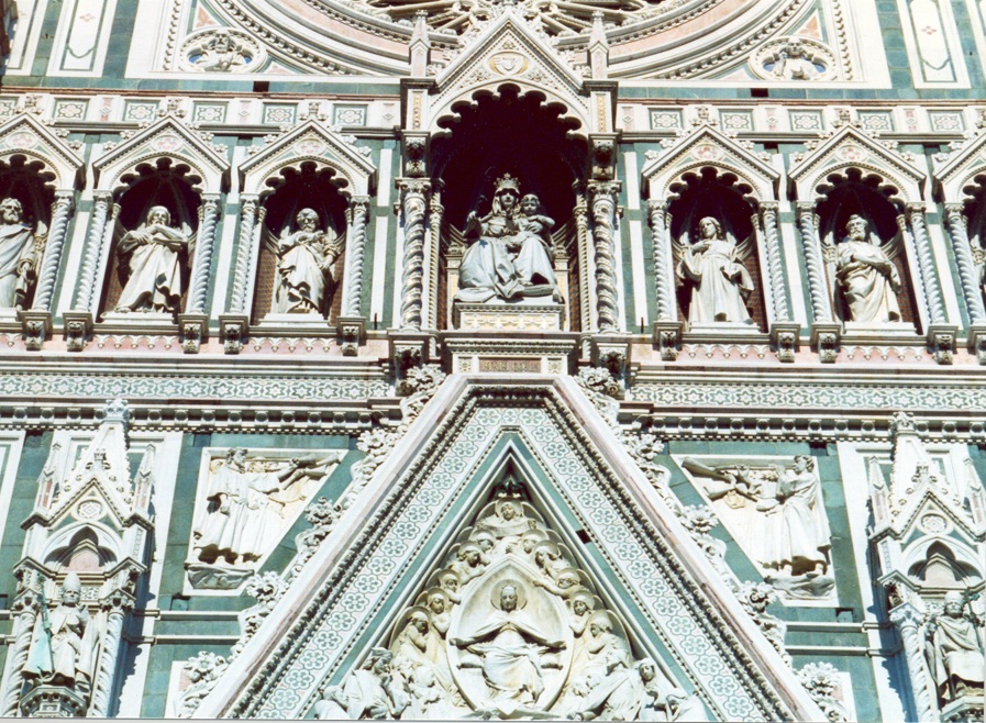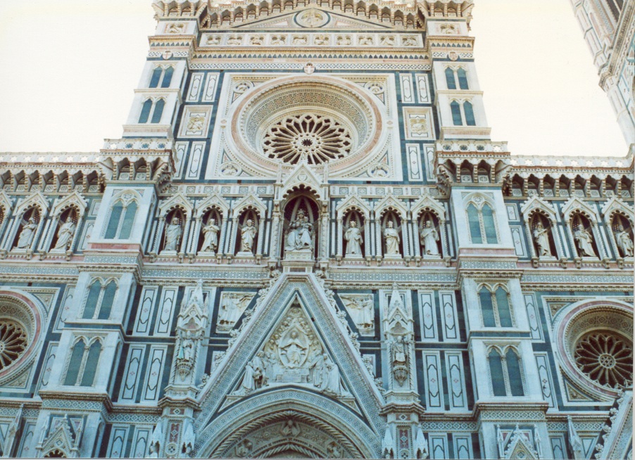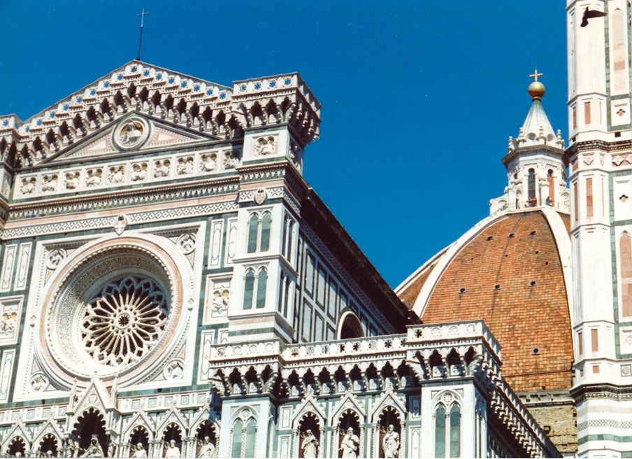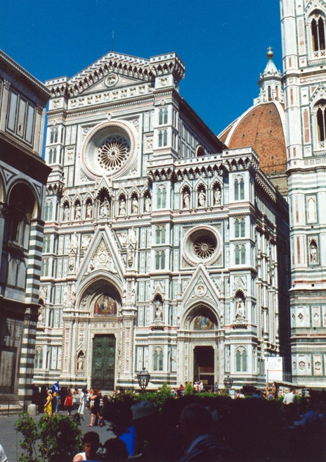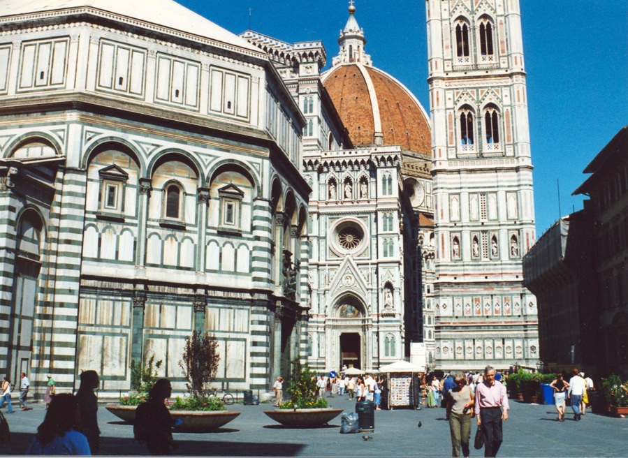 La catedral, Duomo de Florencia, está ubicada en pleno casco antiguo de la ciudad y se encuentra allí desde el renacimiento temprano (siglo XIV). Sus colores, molduras y arquitectura -tiene forma de cruz latina- son cosas de no creer!! La basílica catedral metropolitana de Santa María de la Flor, es la sede episcopal (en italiano, duomo) de la arquidiócesis de Florencia, Italia. Es una de las obras maestras de la primera arquitectura renacentista del Renacimiento italiano.