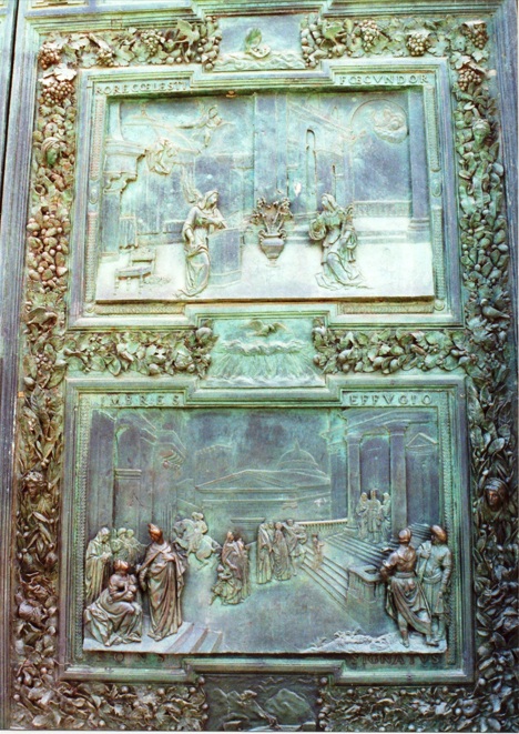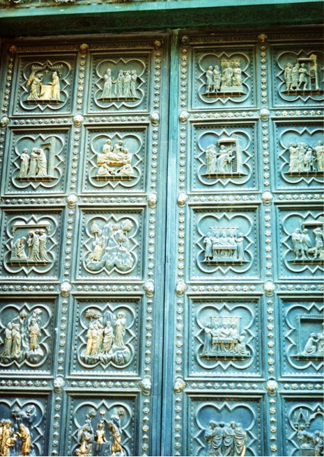 Frente al Duomo se encuentra el Baptisterio, sus puertas son talladas y bañadas en papel de oro, allí es donde bautizan a los bebés.