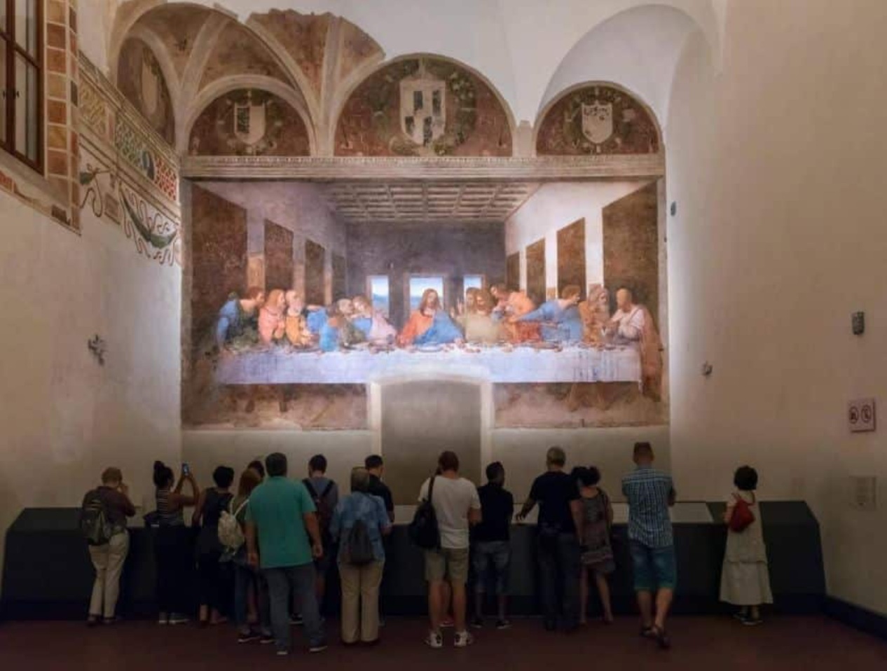 La otra visita clave que tenía reservada desde hacía varias semanas es la santa cena de Leonardo da Vinci. Es una pintura mural obra de Leonardo da Vinci, realizada entre 1495 y 1498. Permanece en la pared sobre la que se pintó originalmente, en el refectorio del convento dominico de Santa Maria delle Grazie, en Milán (Italia). La visita esta restringida a 25 personas por turno , que te permite admirar la obra durante 15 minutos. Las medidas de seguridad parecen exageradas, vas accediendo a diversos habitaciones que funcionan como esclusas, es decir, que no se abre una puerta hasta que no se ha cerrado la anterior. Finalmente conseguimos llegar al recinto donde Leonardo da Vinci pintó una de las obras más famosas de la historia del arte.