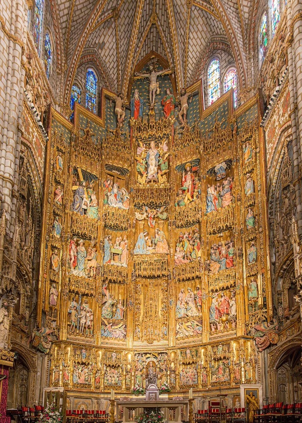 La catedral de Santa María, llamada también catedral primada de España, es un templo católico de arquitectura gótica en Toledo, considerado por algunos como el opus magnum de este estilo en España. Su construcción comenzó en 1226 bajo el reinado de Fernando III el Santo y las últimas aportaciones góticas se dieron en siglo XV cuando en 1493 se cerraron las bóvedas de los pies de la nave central, en tiempos de los Reyes Católicos. Está construida con piedra blanca de Olihuelas.