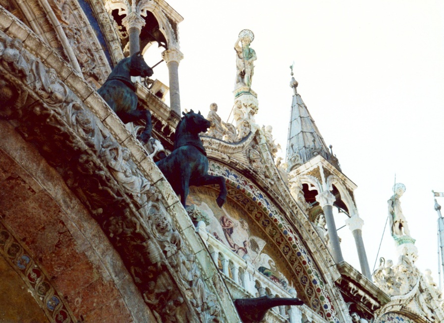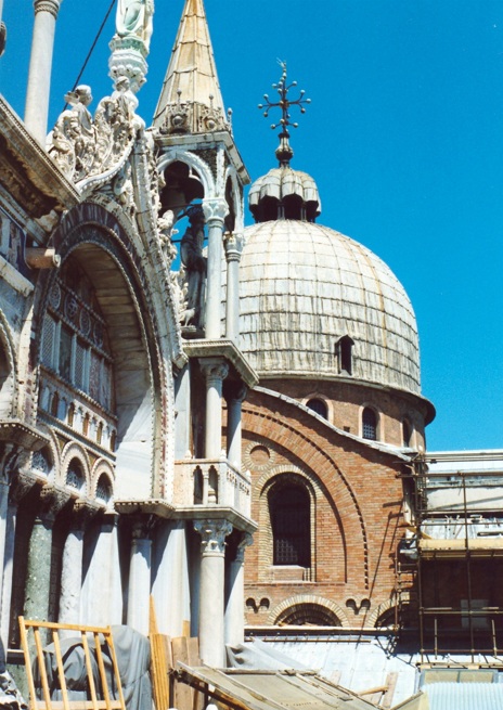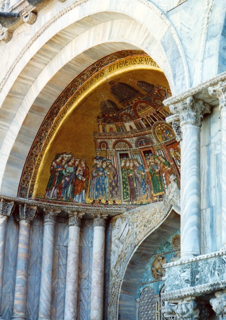 La basílica de San Marcos es el principal templo católico de la ciudad de Venecia (Italia) y la obra maestra de la arquitectura bizantina en el Véneto. Posee el rango de catedral y también el de iglesia patriarcal, además del de basílica. La construcción de la basílica original fue iniciada en el año 828 y finalizada en el año 832, para albergar supuestas reliquias de san Marcos el Evangelista robadas de Alejandría.