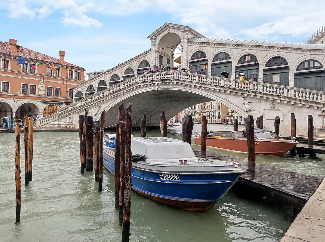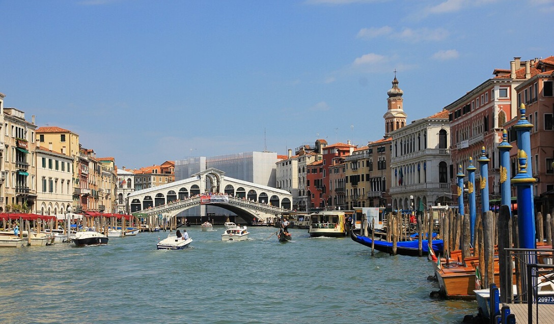 El puente de Rialto (del italiano: Ponte di Rialto) es el más antiguo de los cuatro puentes de Venecia (Véneto, Italia) que cruzan el Gran Canal y probablemente el más famoso de la ciudad. La primera construcción que cruzó el Gran Canal fue un pontón o puente flotante, construido en 1181. Fue reemplazado alrededor de 1250 por un puente de madera. El actual puente de piedra está formado por un único arco, diseñado por Antonio da Ponte, y construido entre 1588 y 1591, basado en el diseño del anterior puente de madera: dos rampas inclinadas se cruzan en un pórtico central.
