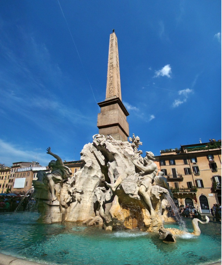 La plaza Navona es uno de los espacios urbanos más destacados de Roma, que reúne esculturas, fuentes y edificios de gran valor artístico y supone un centro de la vida social, cultural y turística de la ciudad. Este espacio ha constituido un emplazamiento de importancia desde la Antigua Roma, en la que se levantaba allí un estadio para competiciones deportivas y combates de gladiadores.