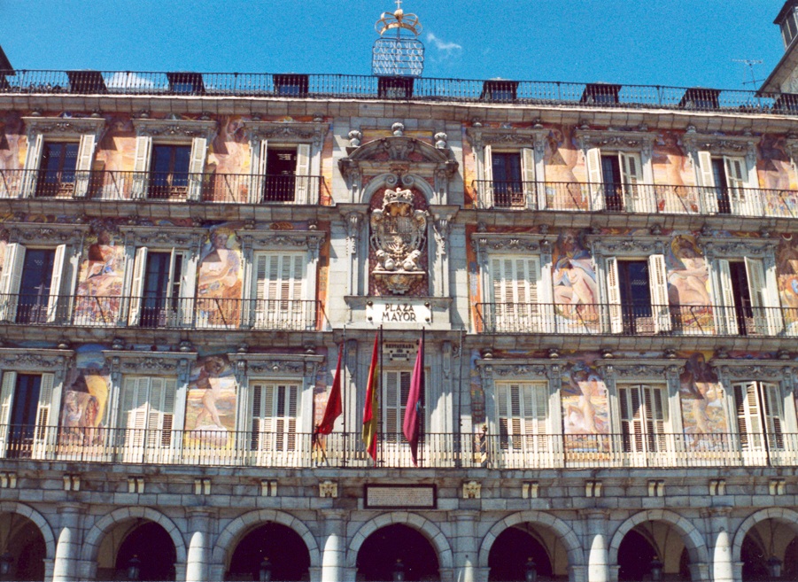 La plaza Mayor está situada en el centro de Madrid, en el barrio de Sol, junto a la calle Mayor y a 300 metros de la Puerta del Sol. Los inicios de la plaza se remontan al siglo XVI, cuando en la confluencia de los caminos (hoy en día calles) de Toledo y Atocha. En 1617, Felipe III, encargó la finalización de las obras a Juan Gómez de Mora, quien concluirá la plaza en 1619.
