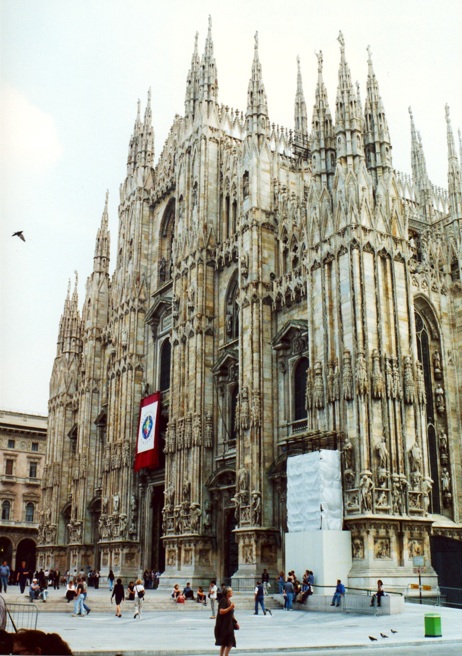 La construcción de la Catedral fue iniciada en 1386 y terminada a principios del siglo XIX, con algunos detalles concluidos en 1965. El 20 de mayo de 1805 Napoleón Bonaparte, a punto de ser coronado rey de Italia, ordenó que la fachada fuera terminada por Carlo Pellicani.