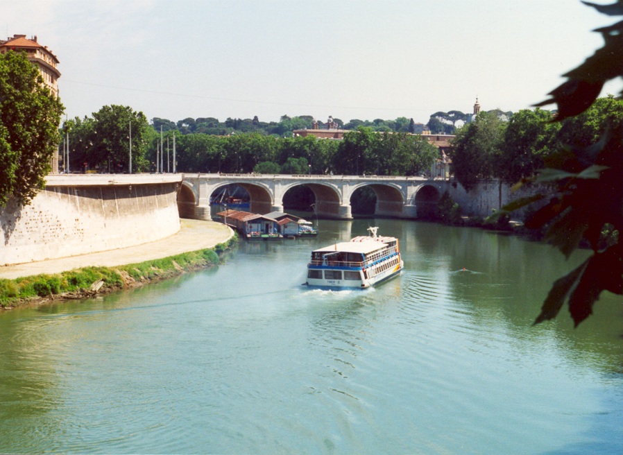 El Tíber en el puente de Sant'Angelo de Roma. El Tíber es el tercer río más largo de Italia (después de los ríos Po y Adige).