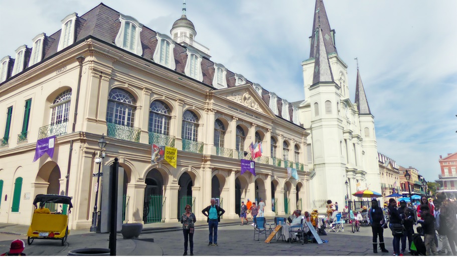 Pero sin dudas, lo más imponente es la St. Louis Cathedral, la catedral más antigua de los Estados Unidos. Todavía se celebran misas y además, se ofrecen tours para recorrerla. En la puerta de la catedral hay varios personajes atractivos, desde gente que dice adivinar el futuro, hasta bandas de músicos tocando jazz.