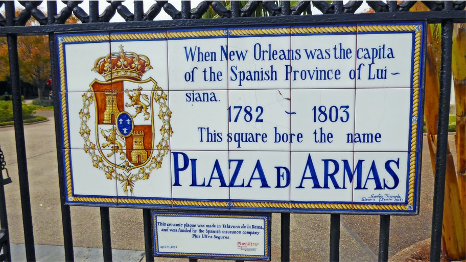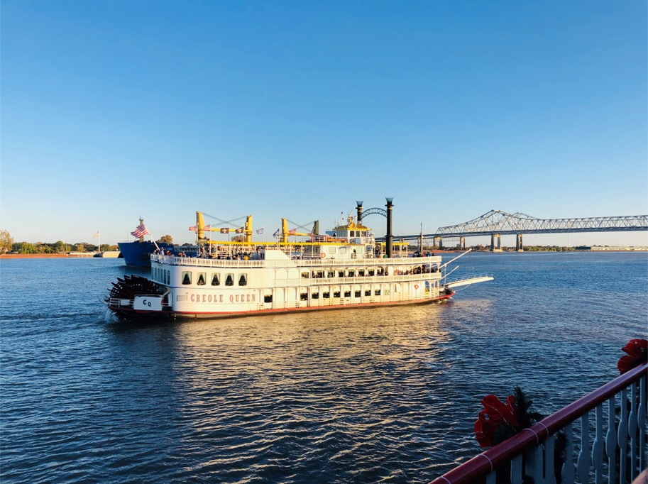 A la salida del shopping nos encontramos en la Spanish Plaza, una plaza con mucha historia de la ciudad, y el lugar desde donde salen los famosos cruceros por el Mississipi. La Plaza lamentablemente estaba en remodelación. El más famoso de estos cruceros, es el «Creole Queen» que ofrece varias opciones, siendo la mejor el tour nocturno con cena jazz.