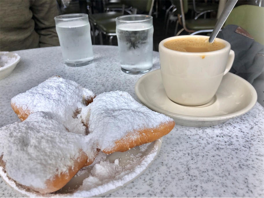 Otro edificio que rodea Jackson Square es el antiguo Cabildo, que hoy funciona como museo. Al frente de la plaza está ubicado el famoso Café du Monde, que está abierto 24/7. Tienes que entrar y probar los famosos beignets, no son mayorcas, ni son beagels, son beignets jajajajaja. Nos sentamos afuera y nos dimos una gran "jartera".