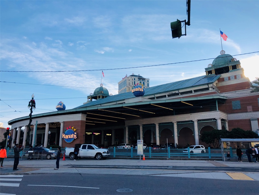 Al frente de la plaza está la entrada al Harrah’s Casino,