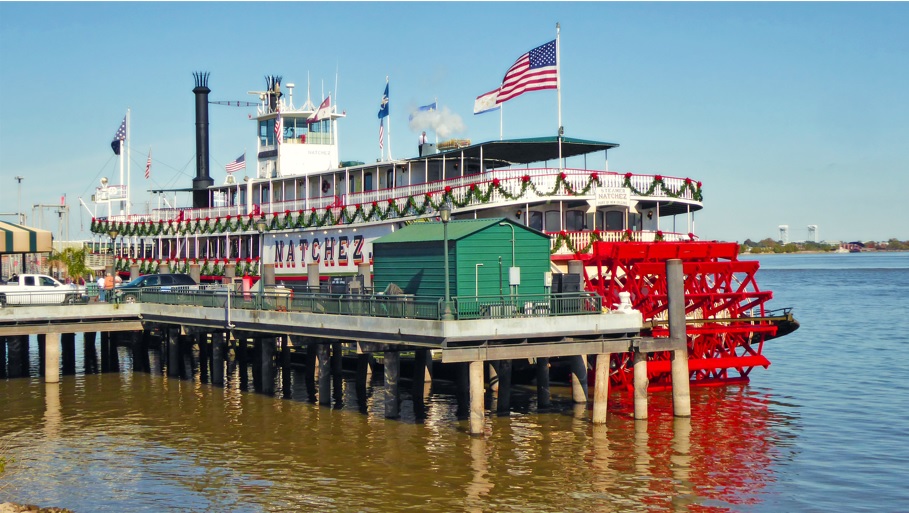 Durante el siglo XIX los vapores como éste fueron los reyes del Mississippi y en ellos se podía llegar a Louisville o Kentucky en pocos días. En los mejores años de Nueva Orleans más de 30 barcos de vapor se daban cita en sus muelles. Los motores de vapor impulsaban unas enormes ruedas de paletas que hacían que navegasen río arriba.