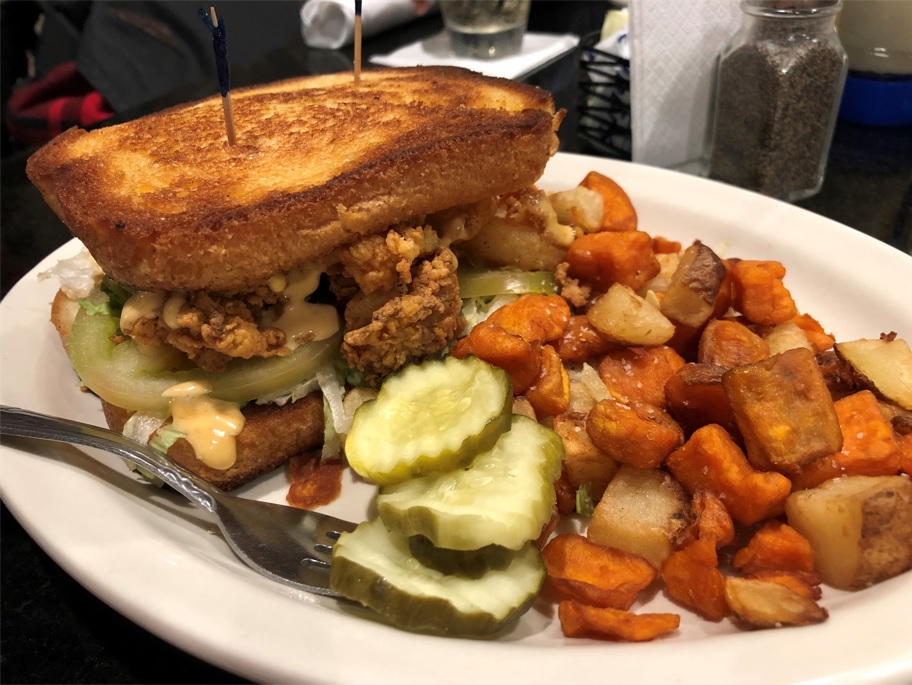 Un viaje a Nueva Orleans no está completo sin un po-boy, y afortunadamente uno de los mejores de la ciudad está ubicado en un lugar histórico a pocos pasos del pantano. Po' boy (también po-boy, po boy, o poor boy) es un sandwich submarino típico de Luisiana (Cocina criolla de Luisiana). Es parecido a un bocadillo y se sirve en una baguette (denominada Louisiana French bread). Está compuesto generalmente de marisco o pescado rebozado, o carne. Se unta con mayonesa y ketchup, y suele llevar lechuga, tomate y pepinillo. A mi me gustó mucho. Caminamos hasta Parkway Bakery & Tavern y ordene mi sándwich.
