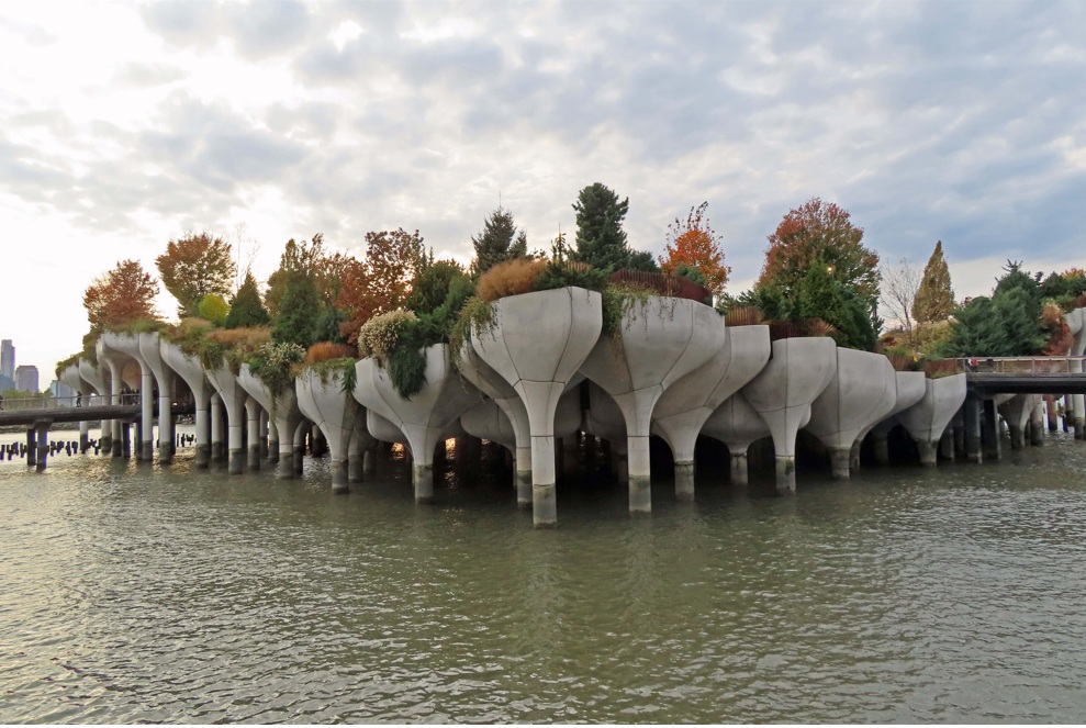 El parque Little Island, un oasis en forma de isla flotante. Situado en el Hudson River, es un parque flotante. Este fragmento de tierra sobre el río Hudson donde hoy en día se encuentra el parque Little Island, fue el hogar de la tribu Lenape durante los primeros años de colonización de América. La visita puede hacerse entre 30 minutos y 1 hora aproximadamente, la entrada es totalmente gratuita y no es necesario hacer reserva previa. La isla está sostenida por 132 en forma de maceta llamadas Tulipanes. Abrió en May 21, 2021.