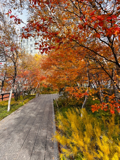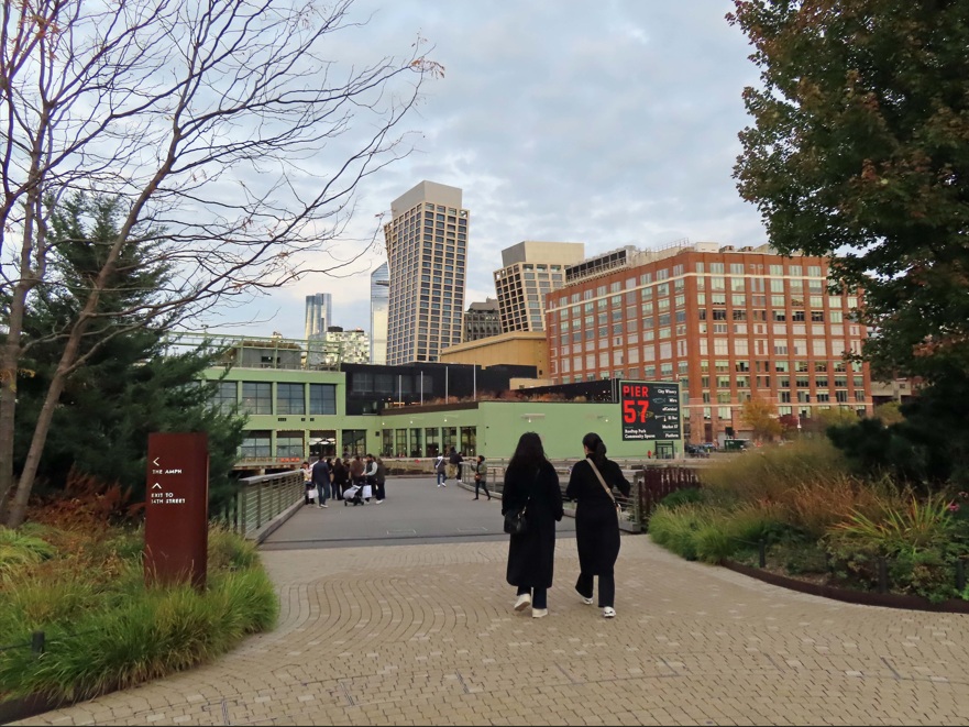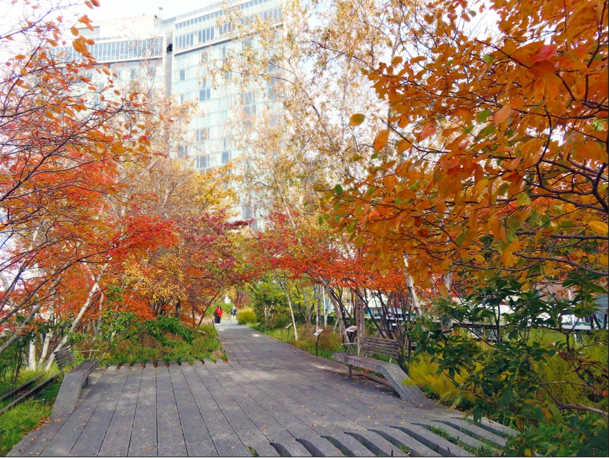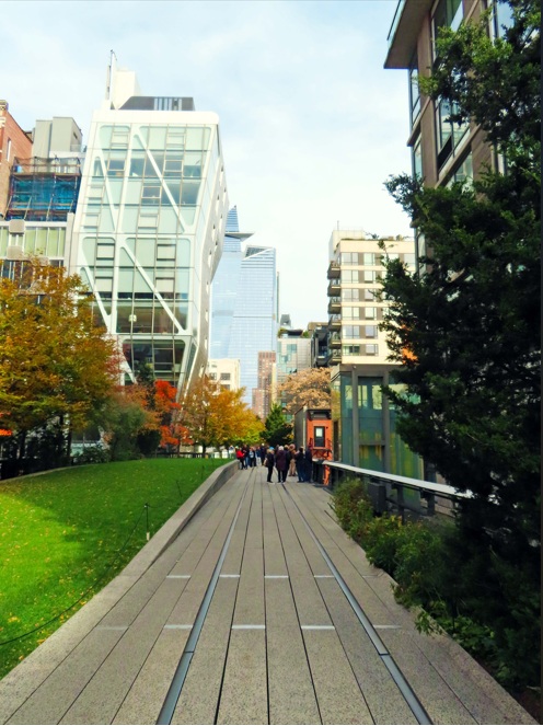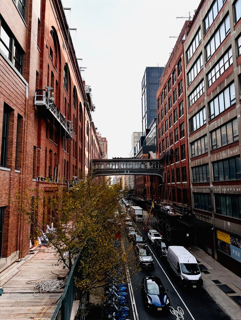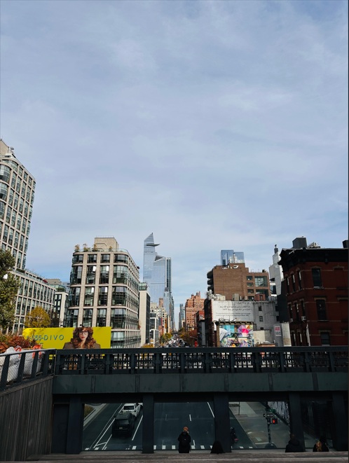 Continuamos ahora por la High Line, un sendero de unos 2 km en línea recta que sigue el antiguo recorrido de un ferrocarril. Vamos a recorrer el paseo al completo, me debe llevar sobre una hora, o quizá un poco más por las paradas y fotos. Durante el paseo podré contemplar los contrastes entre paisajes urbanos y paisajes naturales. Además de disfrutar de un montón de obras de arte al aire libre. También se pueden apreciar vistas a calles típicas de New York.