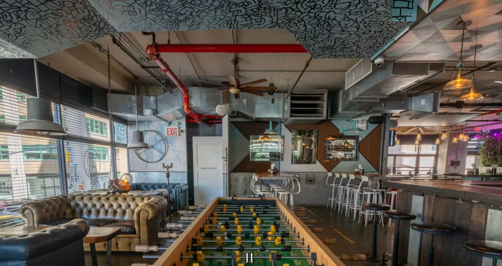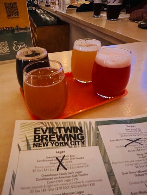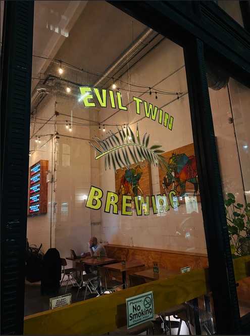 Evil Twin Brewing NYC - DUMBO, 43 Main St, Brooklyn, NY 11201, Estados Unidos. Son 2 minutos caminando. Evil Twin Brewing es conocida sobre todo por sus sours, así como por sus divertidísimas lagers, ales y stouts. Saborea latas de grandeza centradas en Nueva York, como una IPA lupulada llamada «MAD BRICK» ES SÓLO LA MANERA NUEVA DE DECIR «HACE MUCHO FRÍO», o incluso una IPA doble llamada ES «BACONEGGNCHEESE», NO «BACON, HUEVO Y QUESO» Su ambiente de invernadero lo hace perfecto para un día caluroso, y a veces incluso tienen camiones de comida ¡para acompañar tus bebidas! Horarios: Thursday 12pm – 11pm, Friday 12pm – 1am, Saturday 12pm – 1am.