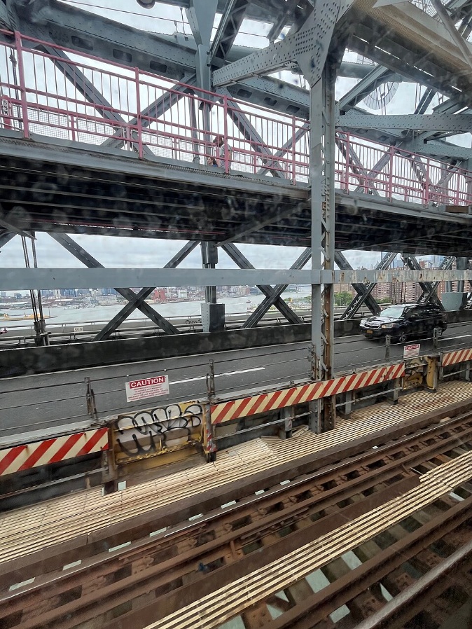 El único inconveniente de las vistas es que es difícil capturarlas. Y es que, a diferencia del puente de Brooklyn, que es abierto, el interior del puente de Williamsburg está recubierto de una reja metálica de tono rosado que hace que sea complicado tomar fotos del paisaje.