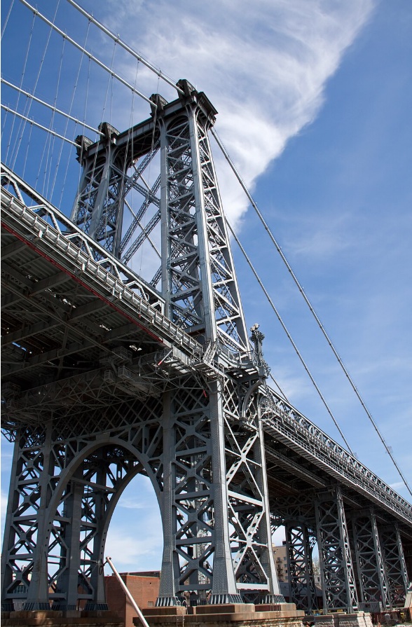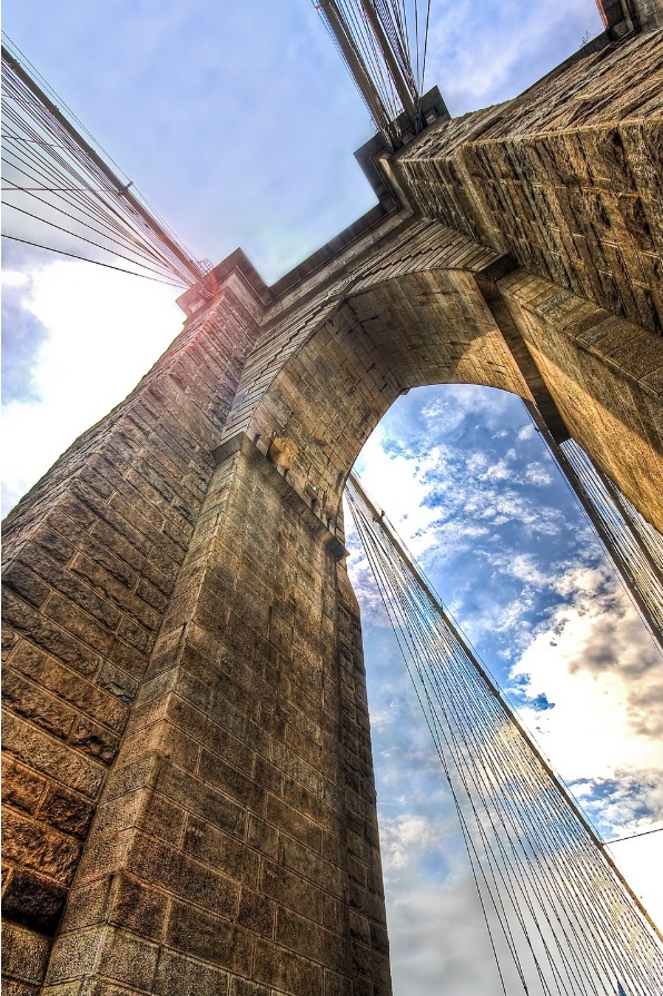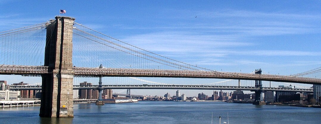 El puente de Brooklyn une los distritos de Manhattan y Brooklyn en la ciudad de Nueva York. Se construyó entre 1870 y 1883, y en el momento de su inauguración era el puente colgante más grande del mundo. Es un emblema de la ingeniería del siglo XIX por lo innovador que fue en aquel entonces el uso del acero como material constructivo a gran escala.