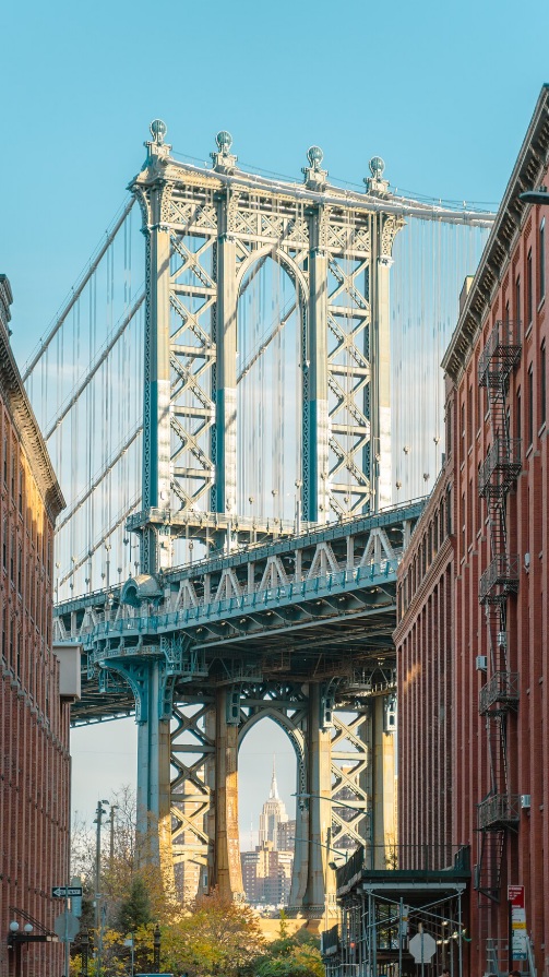 El de Brooklyn, el más veterano, se alza sobre el río desde 1883, mientras que el de Williamsburg abrió en 1903. Conecta el barrio de Chinatown, en Manhattan, con el barrio de Dumbo, en Brooklyn. ¿Sabías que el nombre del barrio de Dumbo es un acrónimo de Down Under the Manhattan Bridge Overpass? - Es decir, lo que queda ‘por debajo de la pasarela del puente de Manhattan’.