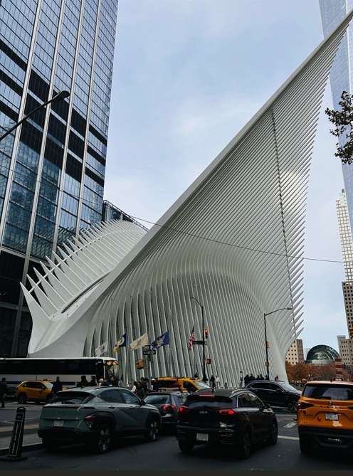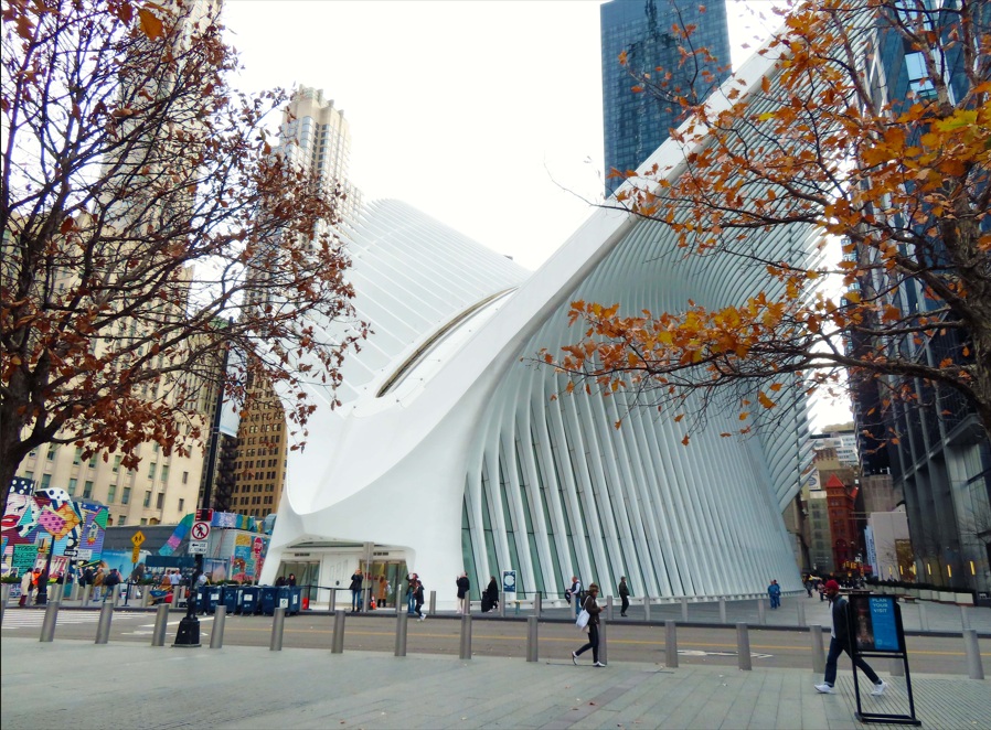 El Oculus, un edificio futurista de un color blanco muy llamativo obra de Santiago Calatrava. En su interior encontrarás un centro comercial y la estación de metro del World Trade Center. Es 1 minuto caminando. Abrió al público en el 2016. El nombre proviene de la franja de ventanas, o tragaluces, a lo largo de la columna vertebral del techo. Oculus es la palabra latina para “ojo”, que, en arquitectura, se refiere a una apertura redonda o similar a un ojo con vista al cielo. Mira hacia arriba a través de las ventanas y verás la Torre de la Libertad. Es una vista inspiradora.