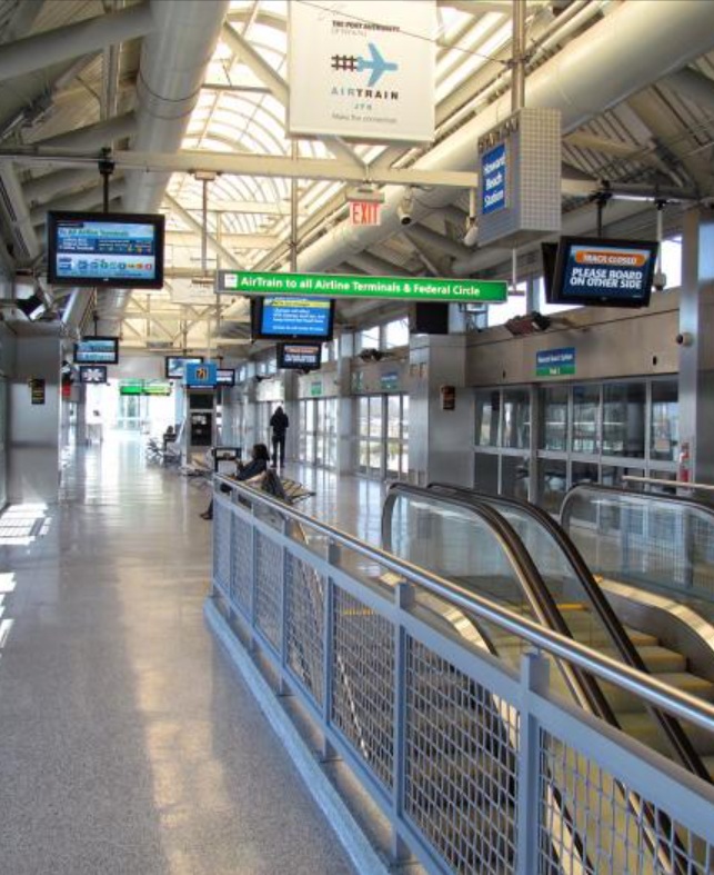 Presentación en el aeropuerto, embarque y salida en vuelo regular de Jet Blue B6 1606, a las 8:05am, con destino a New York llegando a las 11:40am. La ruta más rápida para ir de JFK a Brooklyn es tomar el Air Train hasta Howard Beach (estación del metro línea A). El Air Train es gratuito para moverse entre las terminales del aeropuerto, en mi caso es la Terminal 8, pero para bajar en las estaciones de metro tiene un costo de $8.25. A ese valor hay que sumarle el viaje en metro, cuyo billete sencillo cuesta $2.90, por lo que el costo total del viaje es $11.15. La combinación de Air Train y metro permite llegar al hospedaje en poco más de una hora.