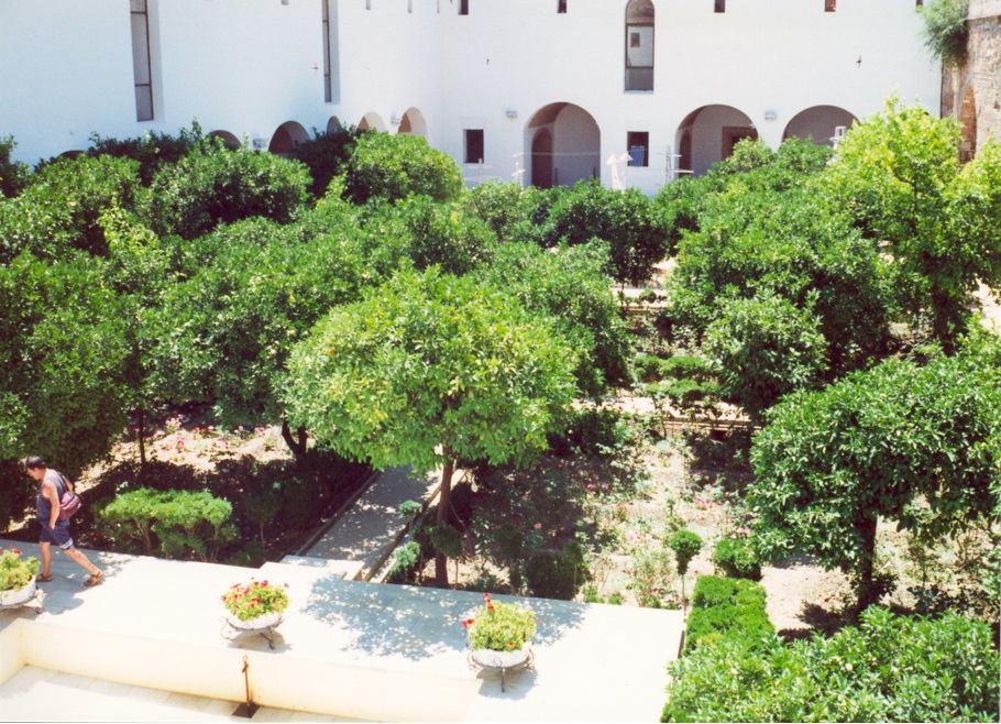 El patio de los Naranjos está situado en la parte norte del templo. Tiene su origen en el patio de abluciones de la mezquita de Abderramán I, aunque también se utilizó para impartir enseñanza y realizar juicios. Fue posteriormente ampliado y reformado durante las siguientes etapas constructivas.