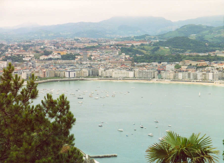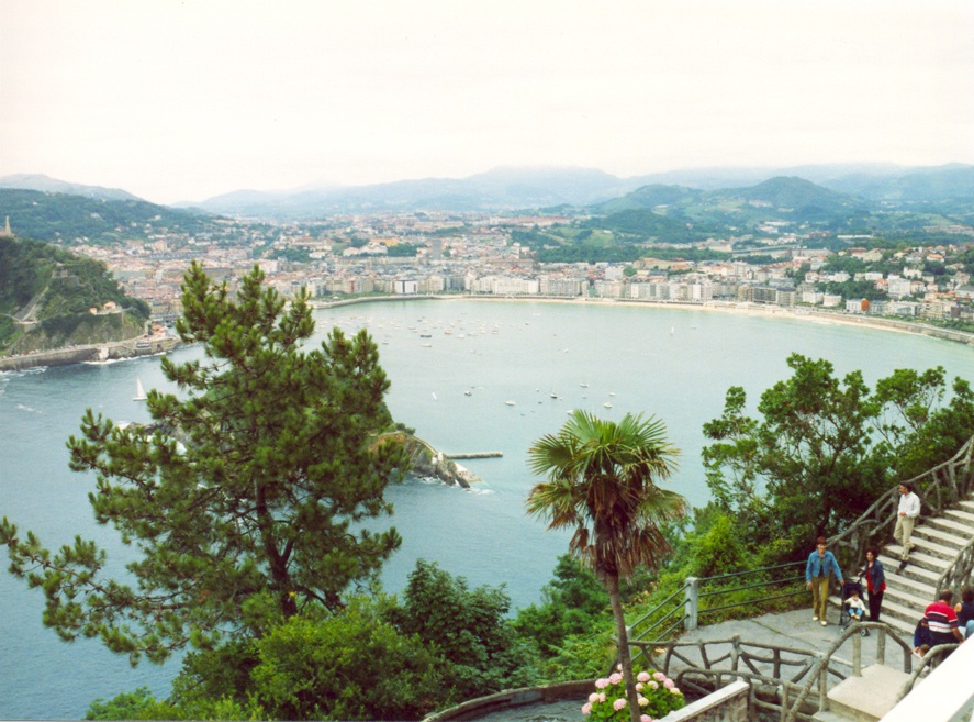 La bahía Donostiarra esta bordeada por Montes , el famoso Monte Igueldo , donde es una maravilla contemplar desde lo alto todo San Sebastián , la playa Ondarreta separada por el pico del Loro de la Playa de la Concha , desde este monte Igueldo que dispone de un buen Hotel donde es un lujo alojarse ( Hotel Monte Igueldo ), precisamente hay nos alojamos y créanme, bien merece la pena.