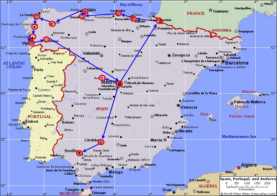 Ruta a Santiago que hicimos en el viaje, claro se añadieron otras ciudades de España que no habíamos visitado anteriormente. Esto se hizo en 15 días, un itinerario bastante ambicioso, pero con buena planificación, se puede hacer.
