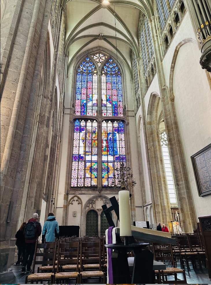 vidrieras y un órgano del siglo XVI. La entrada a la iglesia